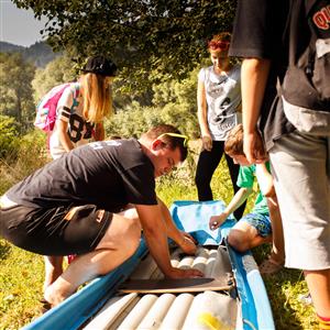 Nasledujúci deň sa bude niesť v akčnom duchu. Stretnete so skúsenými inštruktormi, ktorí vám poskytnú všetky potrebné informácie o bezpečnosti na vode a pravidlách splavu. Nasledovať bude príprava vodáckej výstroje a rozdelenie posádok do lodí.